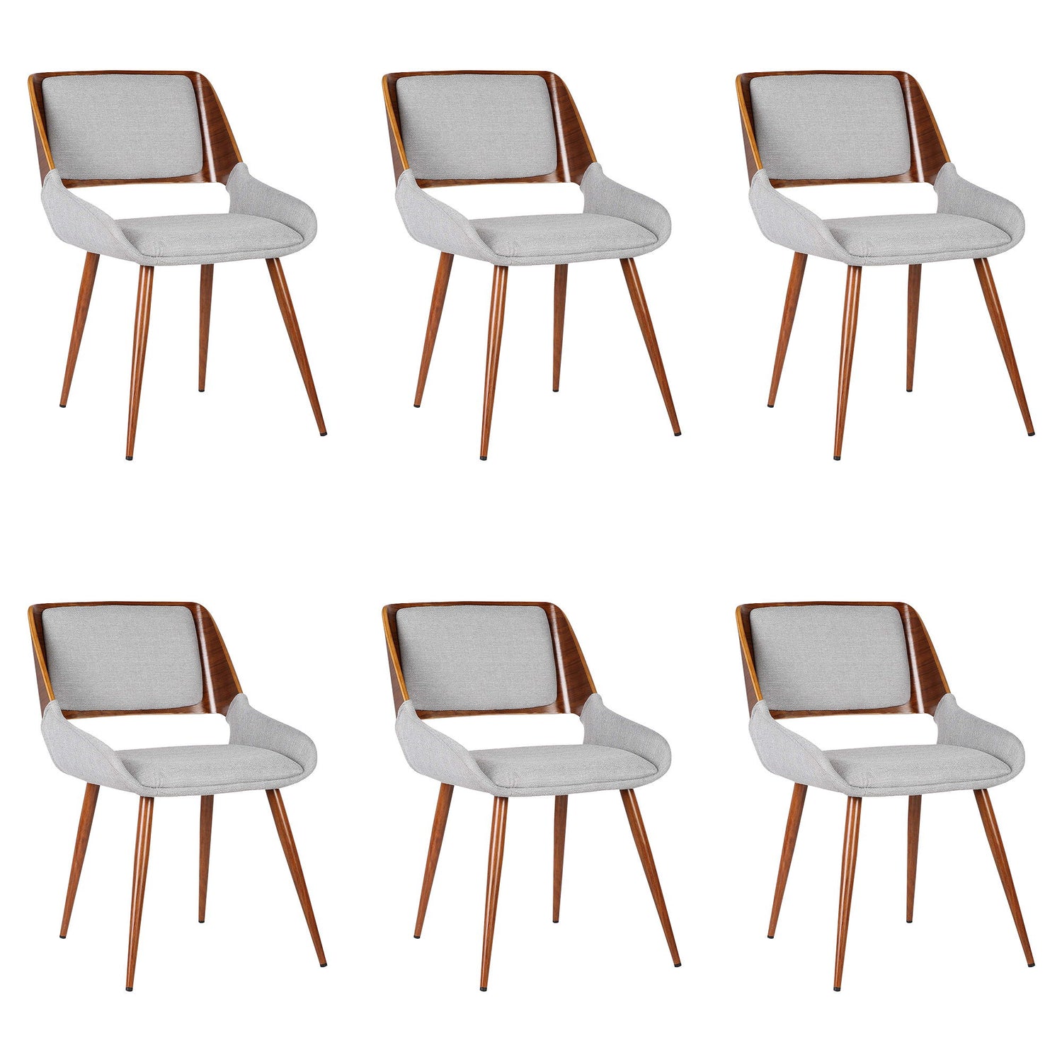 Panda - Mid-Century Dining Chair (Set of 6) - Walnut Finish And Gray Fabric