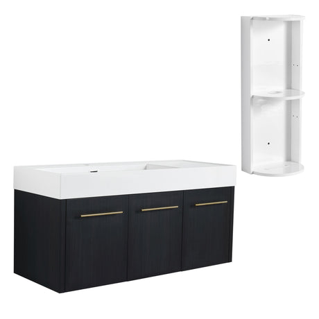 Modern Chestnut Wall Mounted Bathroom Vanity With Left Resin Sink And Storage Rack - Black Chestnut