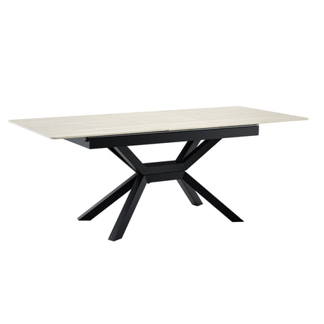 Rectangular Extendable Dining Table With Geometric X Frame, Kitchen Table For Dining Room - Beige