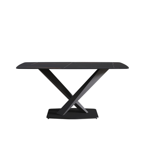 63" Artificial Stone Black Curved Black Metal Leg Dining Table, 6 People - Black