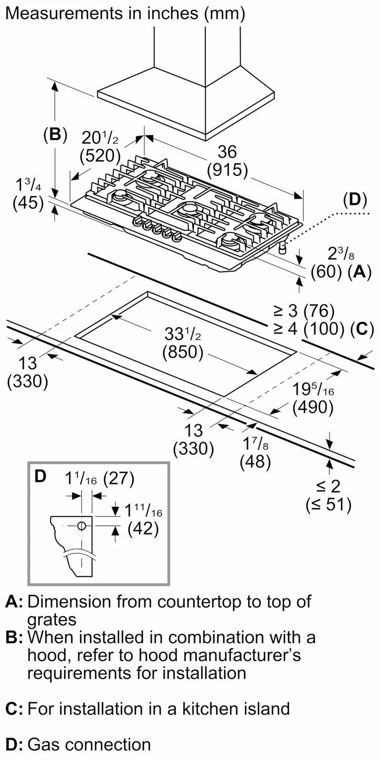 300 Series Gas Cooktop 36" Stainless steel - (NGM3650UC)