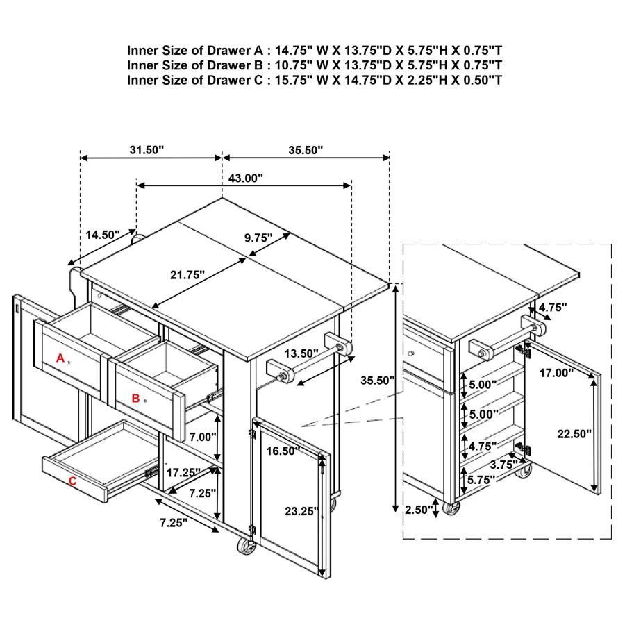 Jalen - 3 Door Mobile Kitchen Cart - Natural Brown And White is backordered and will ship as soon as it is back in stock.