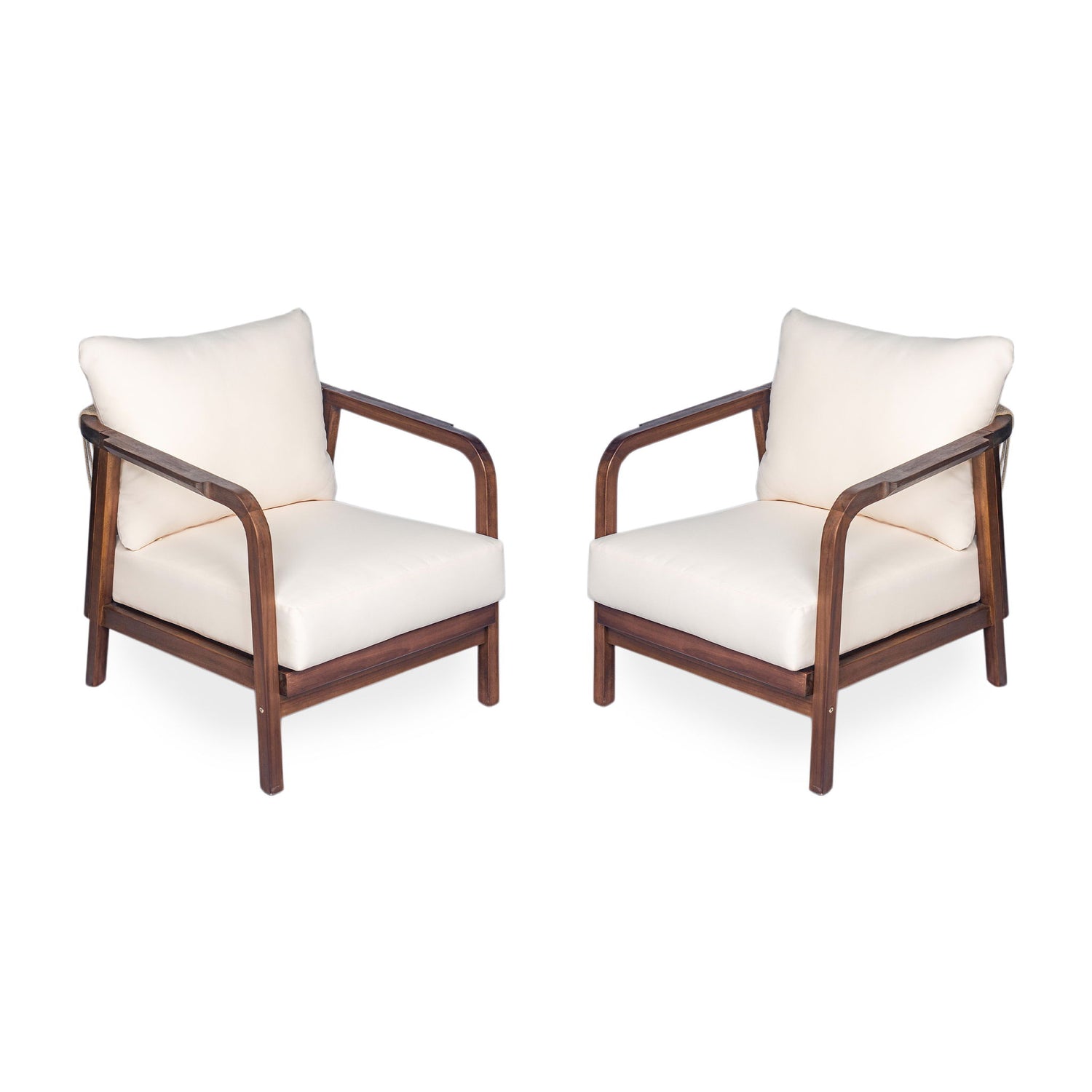Wooden Outdoor Lounge Chair Set With Woven Backrest And Cushions - Teak