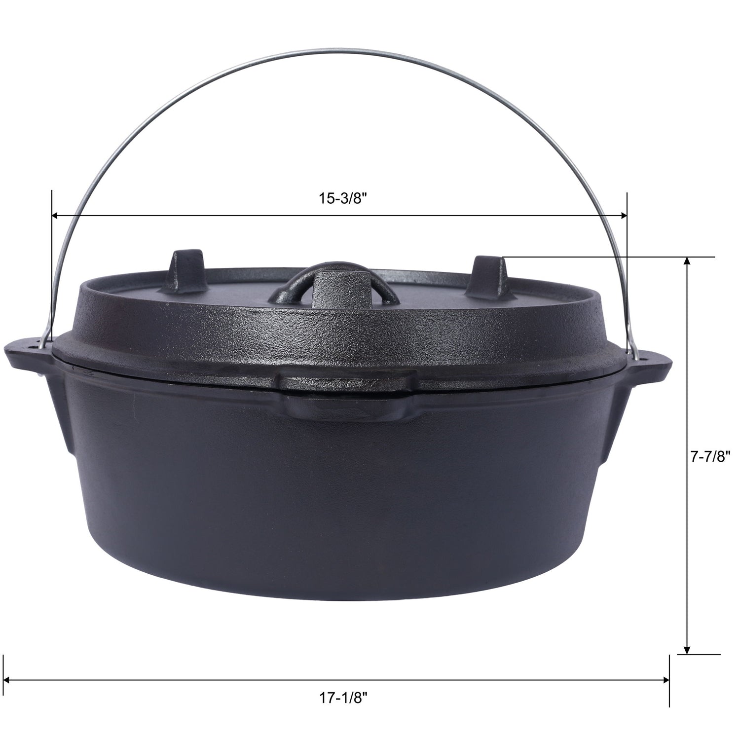 Pre-Seasoned Cast Dutch Oven With Skillet Lid For Outdoor Cooking, 8 Quart - Black