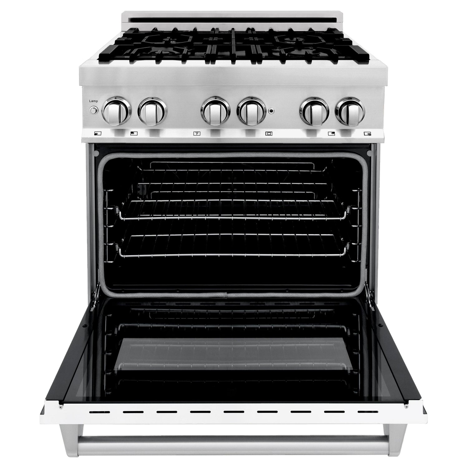 ZLINE 30 in. 4.0 cu. ft. Electric Oven and Gas Cooktop Dual Fuel Range with Griddle and White Matte Door in Stainless Steel (RA-WM-GR-30)
