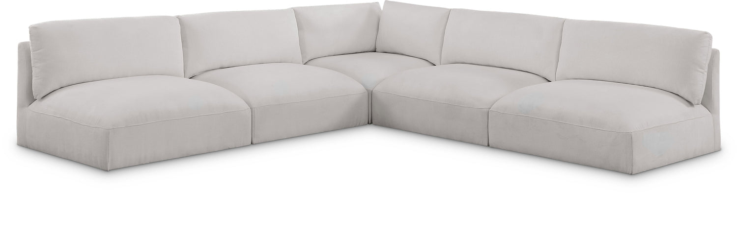 Ease - 5 Piece Modular Corner Armles Sectional - Cream