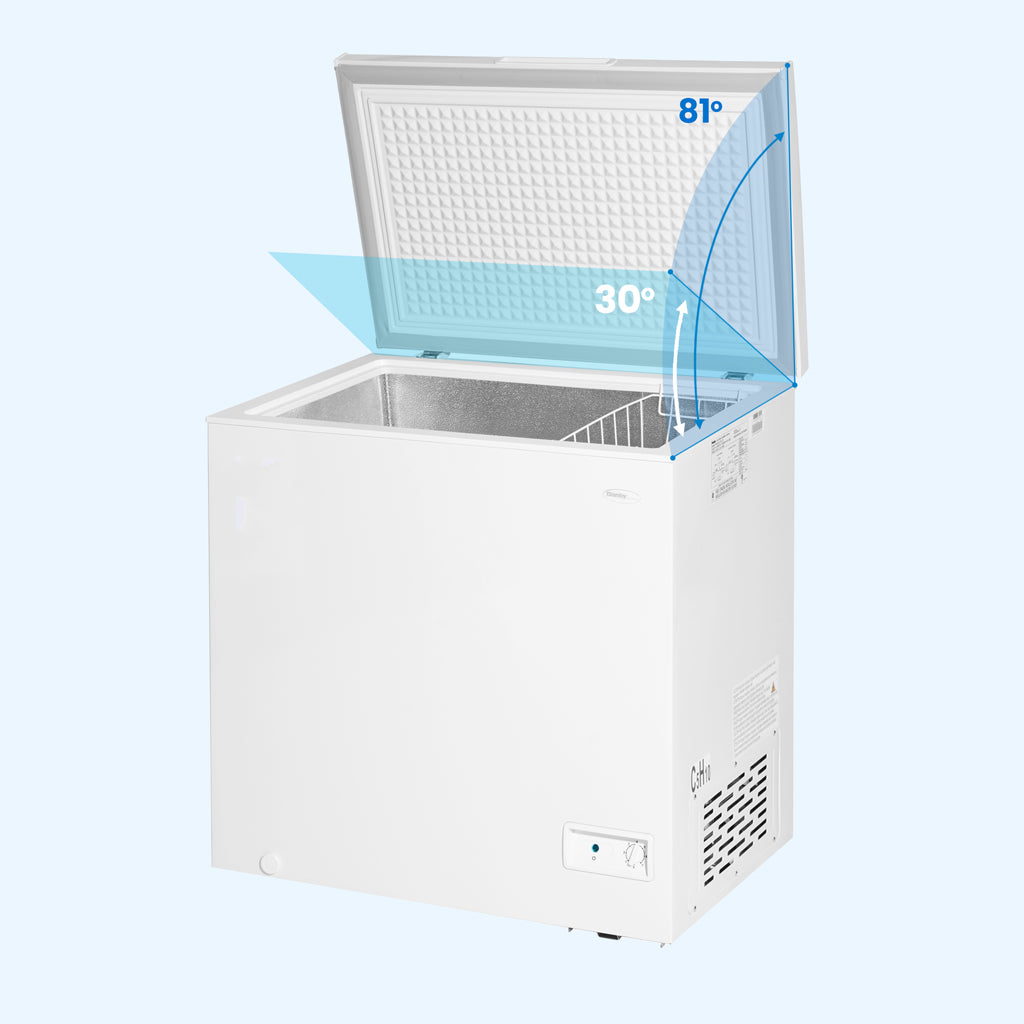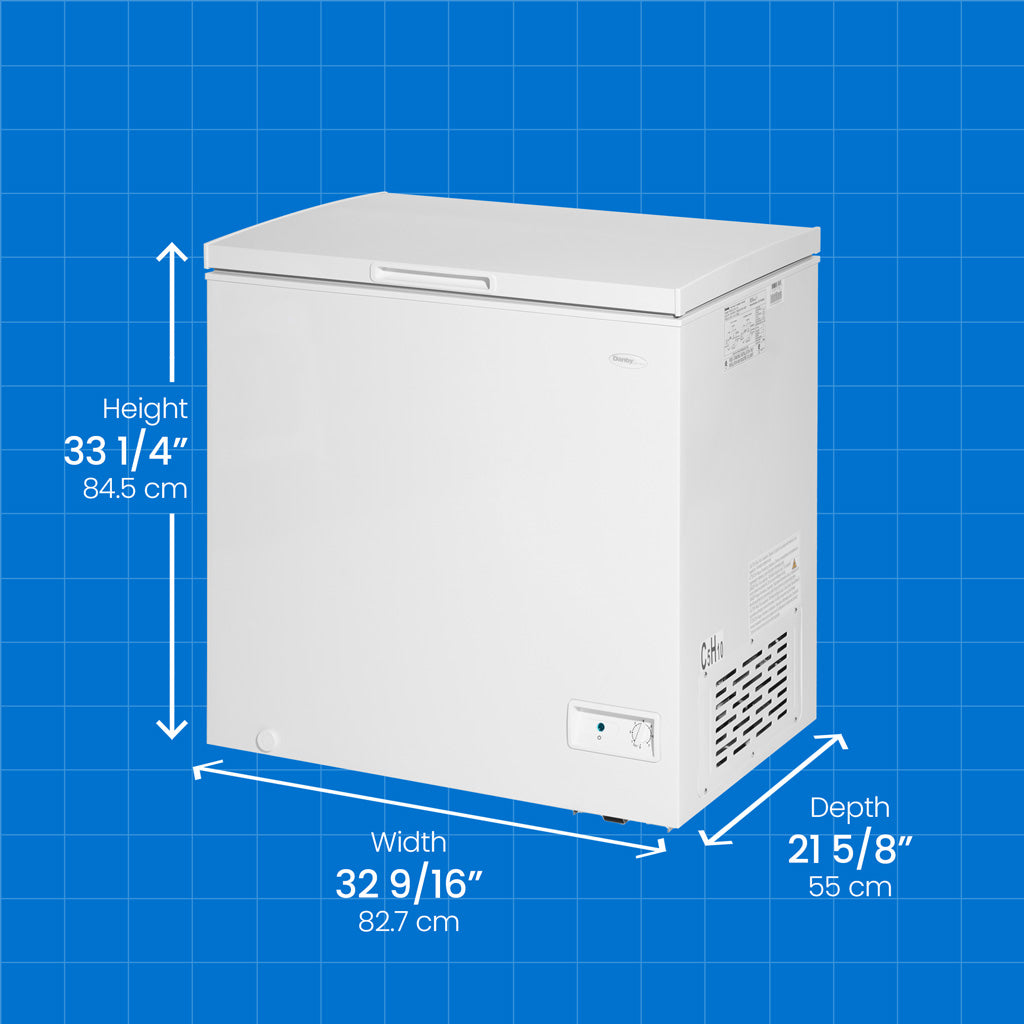 The Danby Diplomat 7.0 cu. ft. Chest Freezer is an ideal solution for households, cottages, offices, or any other location requiring additional storage space for frozen foods. Our power-on indicator light enables you to confirm the safety of your frozen items preservation quickly and conveniently. This model is Garage Ready & able to maintain optimal performance at external temperatures between 0F to -110F (-17C to -43C). The 360-degree cooling system utilizes D-shaped coils that snugly hug the inner wall to optimize the freezing time of newly added foods in the freezer, which preserves nutrients. This model is DOE-compliant, saving you energy and money. This freezer can sit closer to walls thanks to the new thinner profile hinges. Additionally, the counter-balance hinges enable the lid to stay open at any angle, providing easy access. The freezer is equipped with a removable storage basket to help you separate and organize your food.