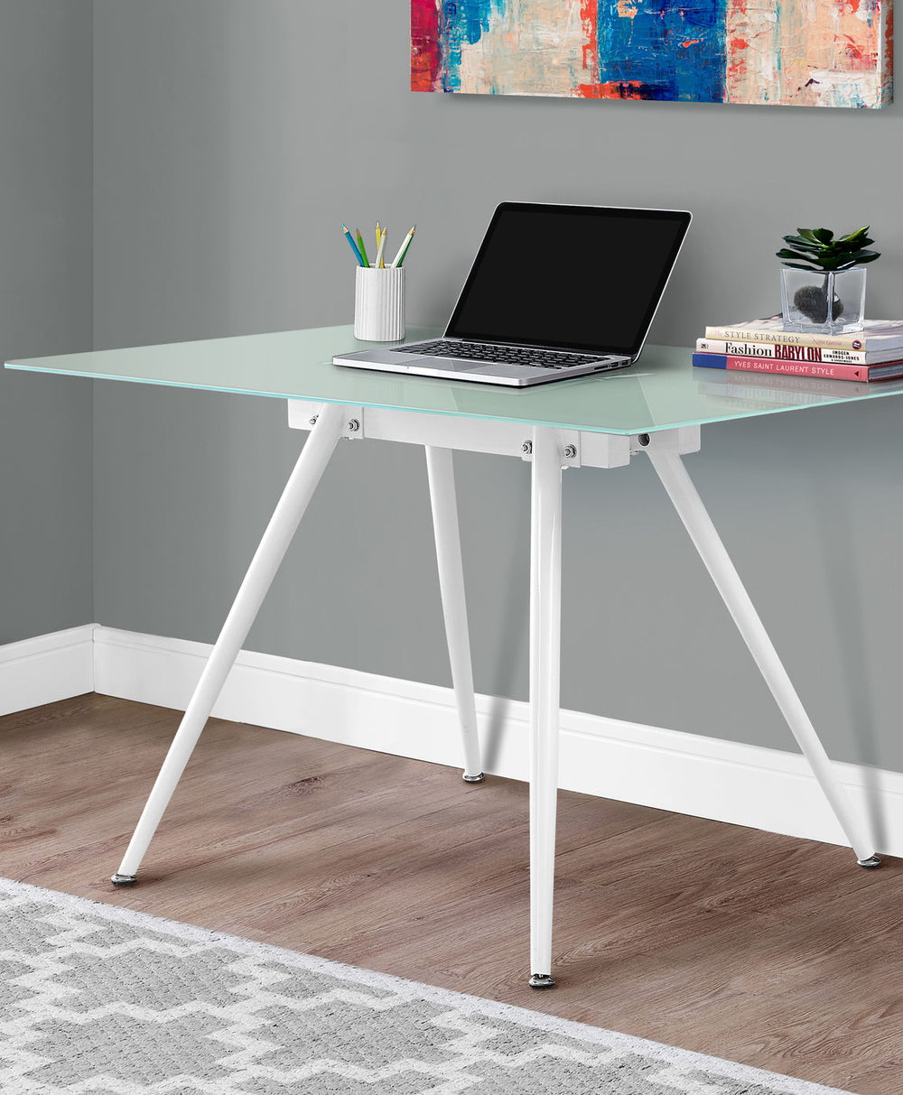 Computer Desk For Home Office, Laptop, Tempered Glass, Contemporary & Modern - White