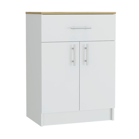 Pantry Organizer Cabinet One Drawer, Two Interior Shelves, Two Doors - White / Light Oak