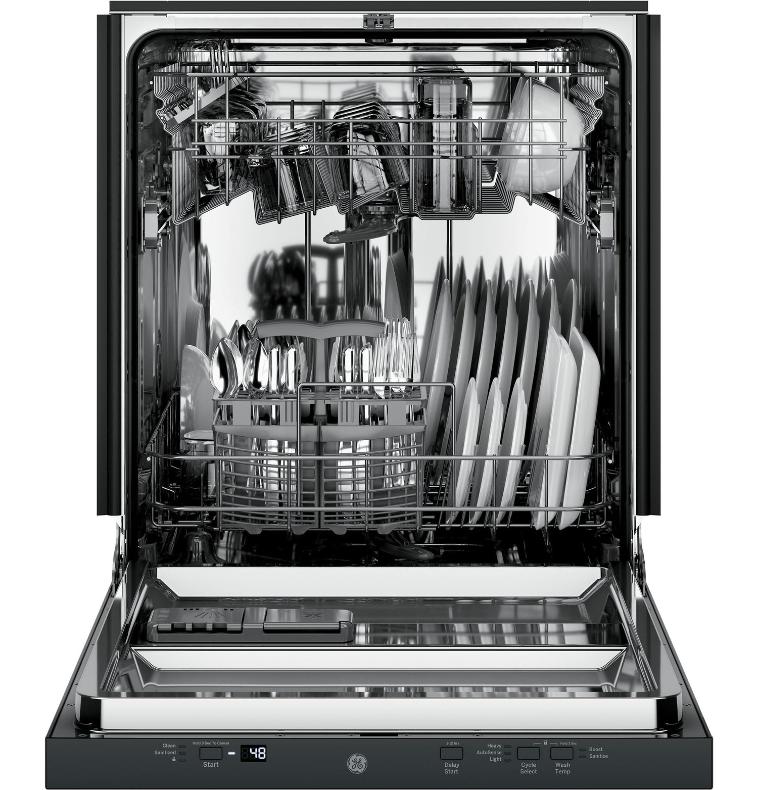 GE 24 in. Top Control Flush-Mount Dishwasher with 51 dBa Sound Level, Condensate Dry & Pocket Handle, Stainless Steel interior - BlackGDT225SGLBB)