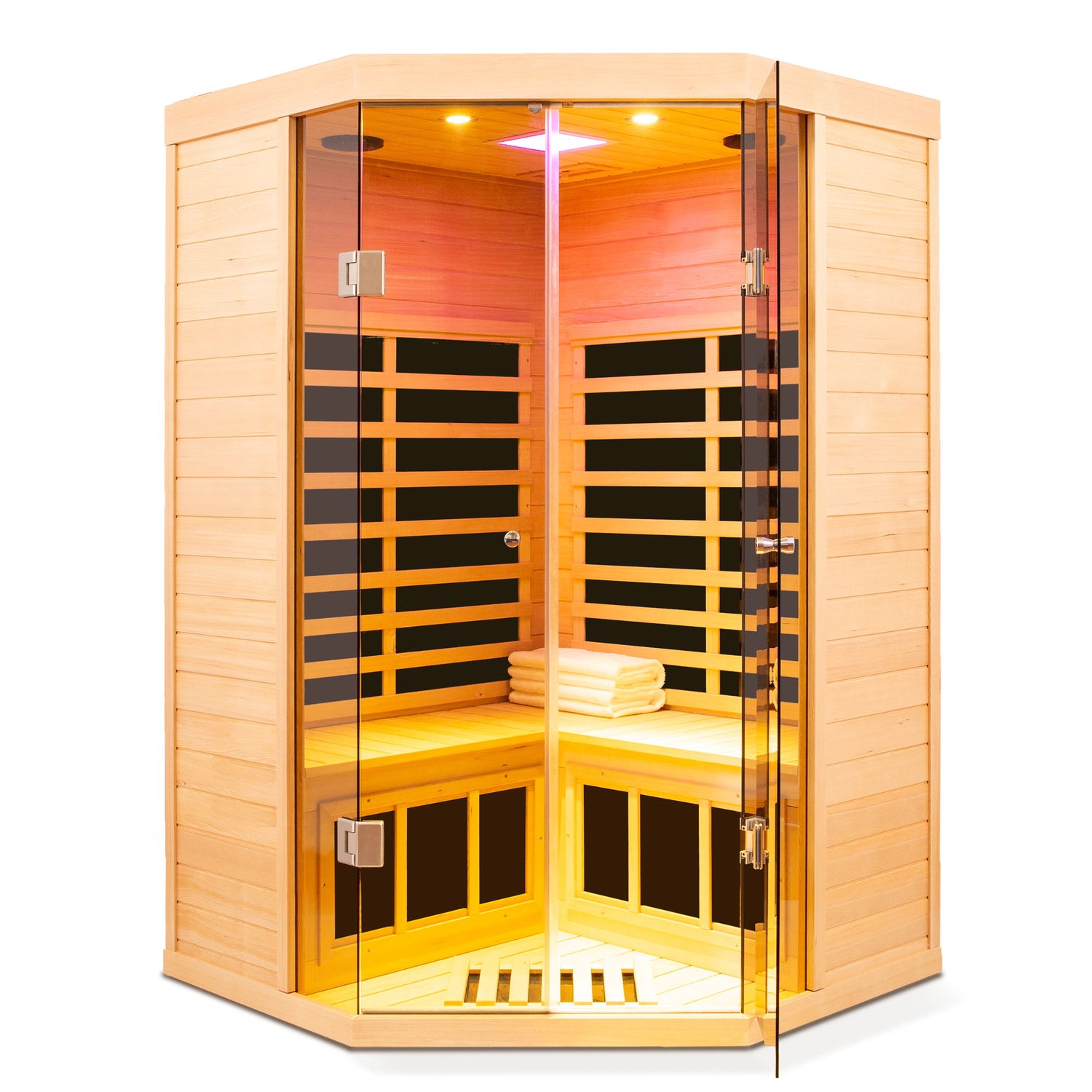 2 Persons Large Glass Front Deluxe Version Hemlock Far Infrared Corner Sauna Room - Natural