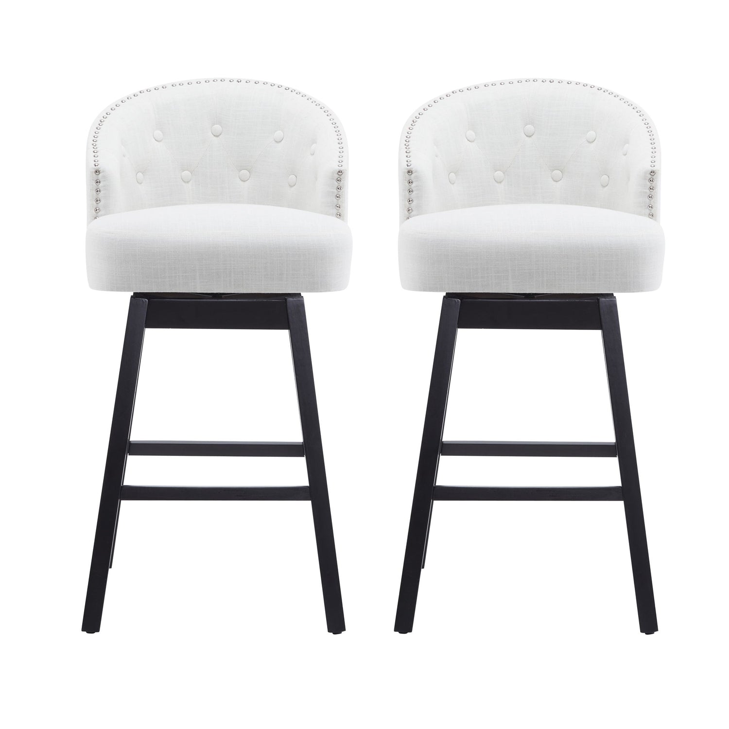 Swivel Counter Stools (Set of 2), Upholstered Counter Height Bar Stools With Solid Rubber Wood Frame, Backrest, Footrest, Armless Barstools For Home Bar, Kitchen Counter - Natural / Beige