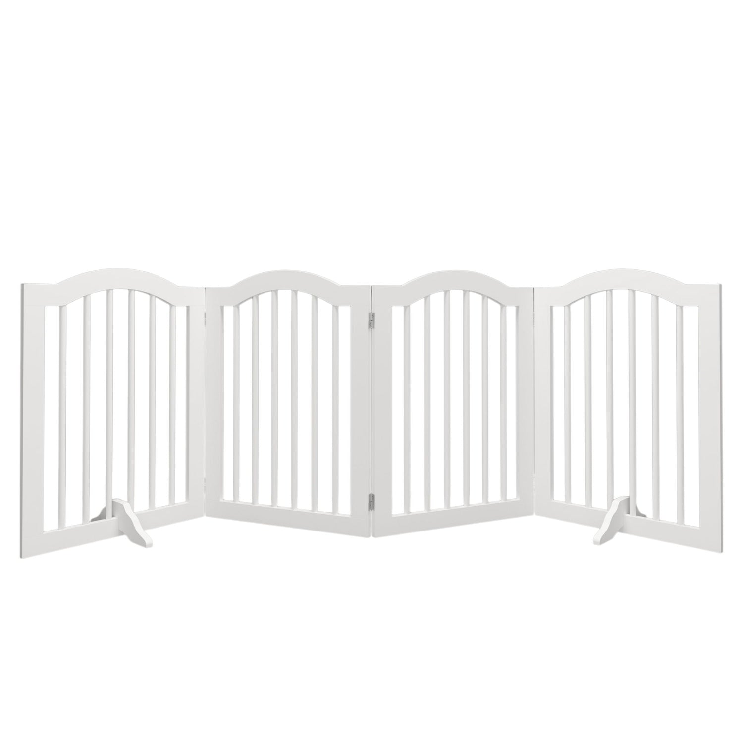4 Panel Freestanding Pet Gate With Foldable Design And Support Feet - White