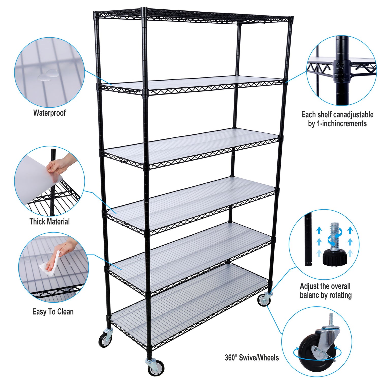 - High Load Capacity: Each of the 6 tiers can hold up to 1000lbs, making the total capacity 6000lbs, perfect for heavy items.