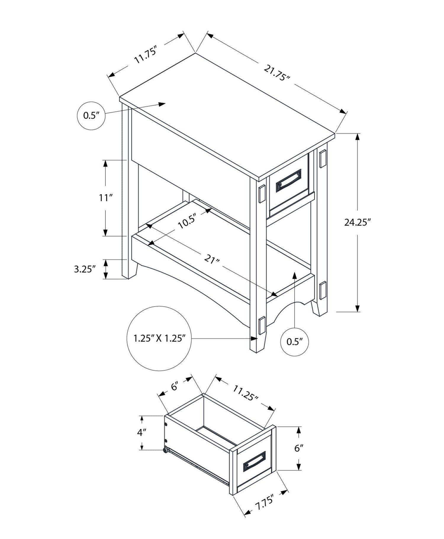 Accent End Table, 2 Tier, Narrow, Storage Drawer, Transitional - Walnut