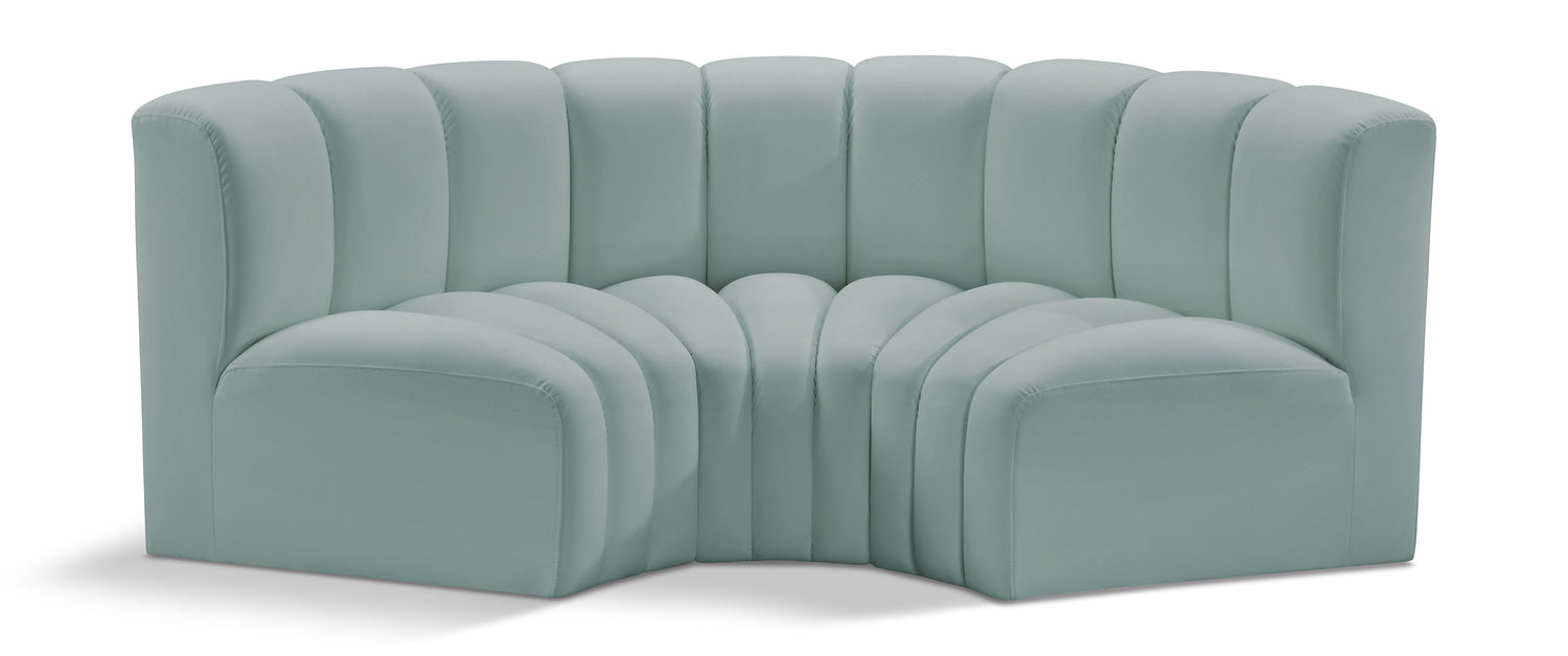 Arc - Faux Leather 3 Piece Modular U-Shaped Sofa - Mint Green