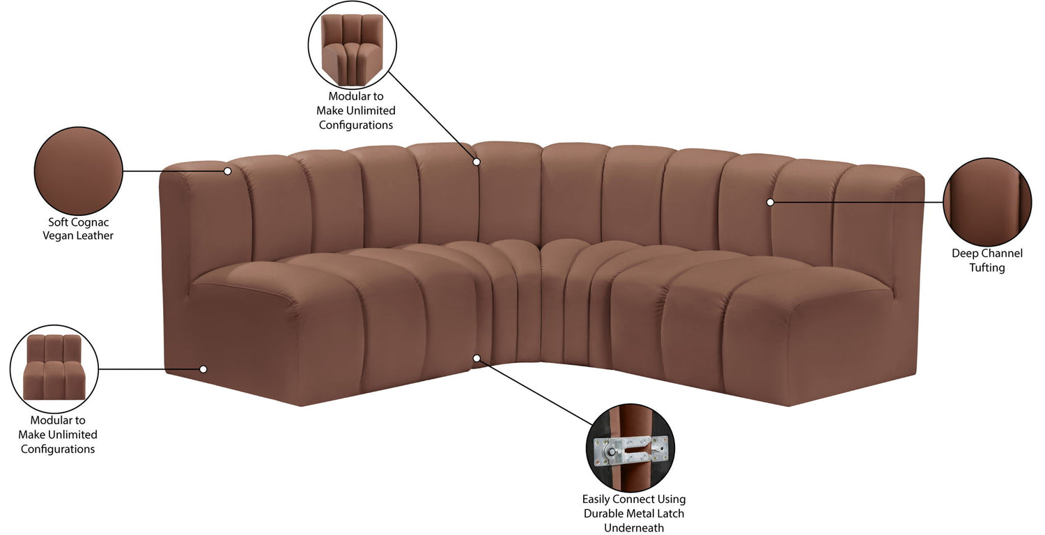 Arc - Faux Leather 4 Piece Corner Modular Sofa - Cognac