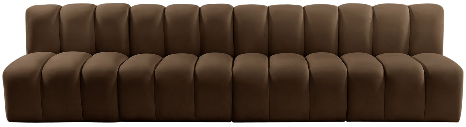 Arc - Velvet 4 Pieces Modular Sofa - Dark Brown
