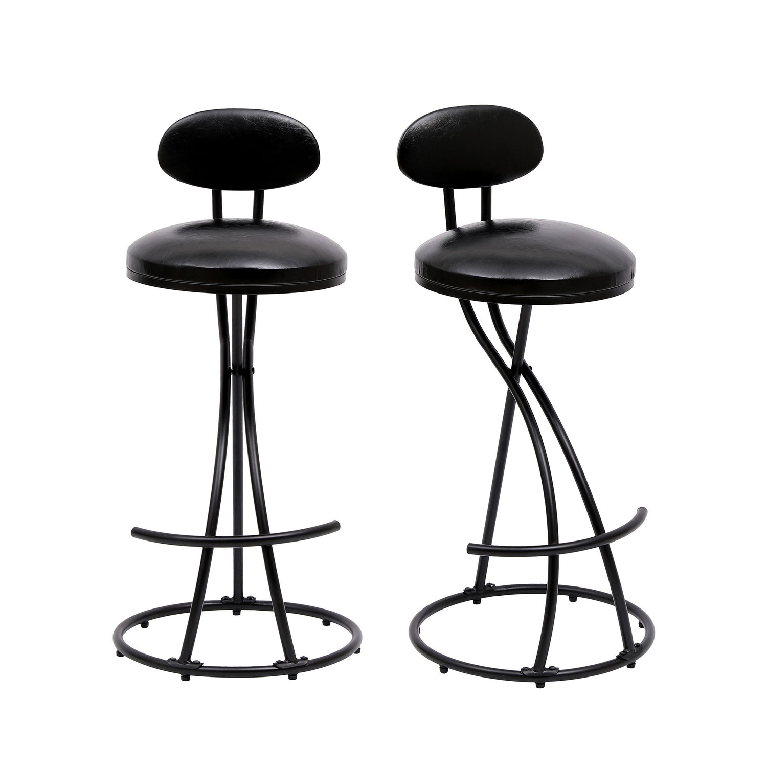 Bar Stools Upholstered Counter Height Barstools For Kitchen Island (Set of 2) Modern Leather Dining Chairs With Footrest - Black