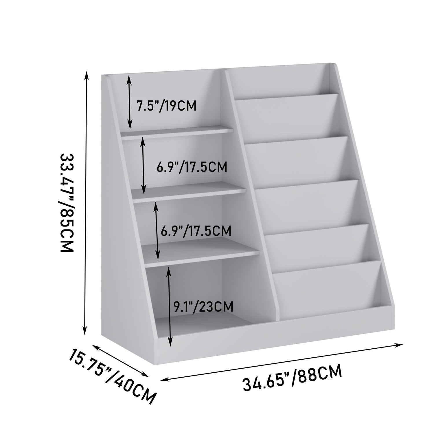 Bookshelf And Toy Storage Organizer, 4 Tier Bookcase With Display Stand For Playroom - Gray