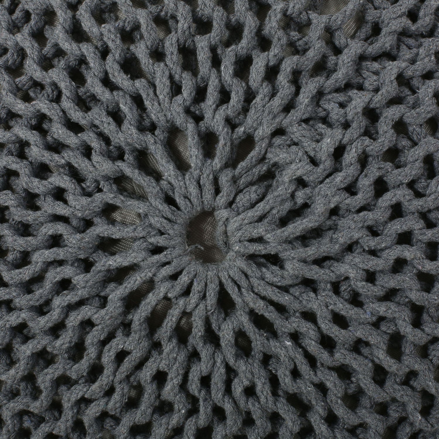 Bordeaux - Knitted Cotton Round Pouf Ottoman - Gray