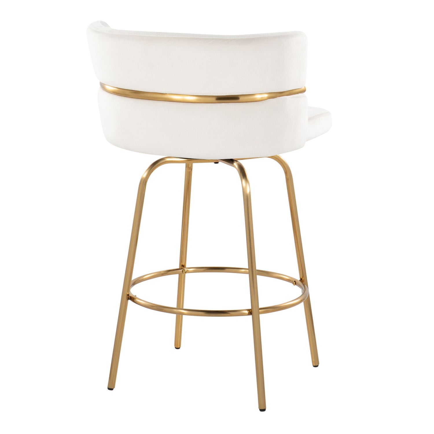 Cinch - Glam / Art Deco Fixed Height Counter Stool With Swivel With Round Footrest (Set of 2) - Gold / Cream