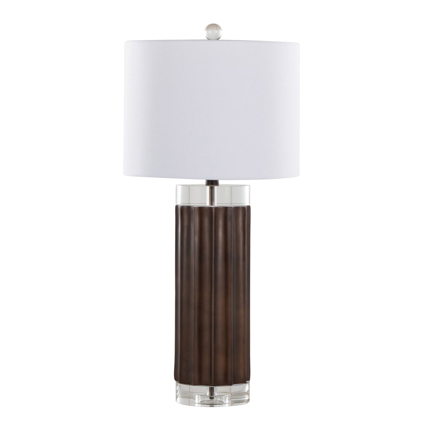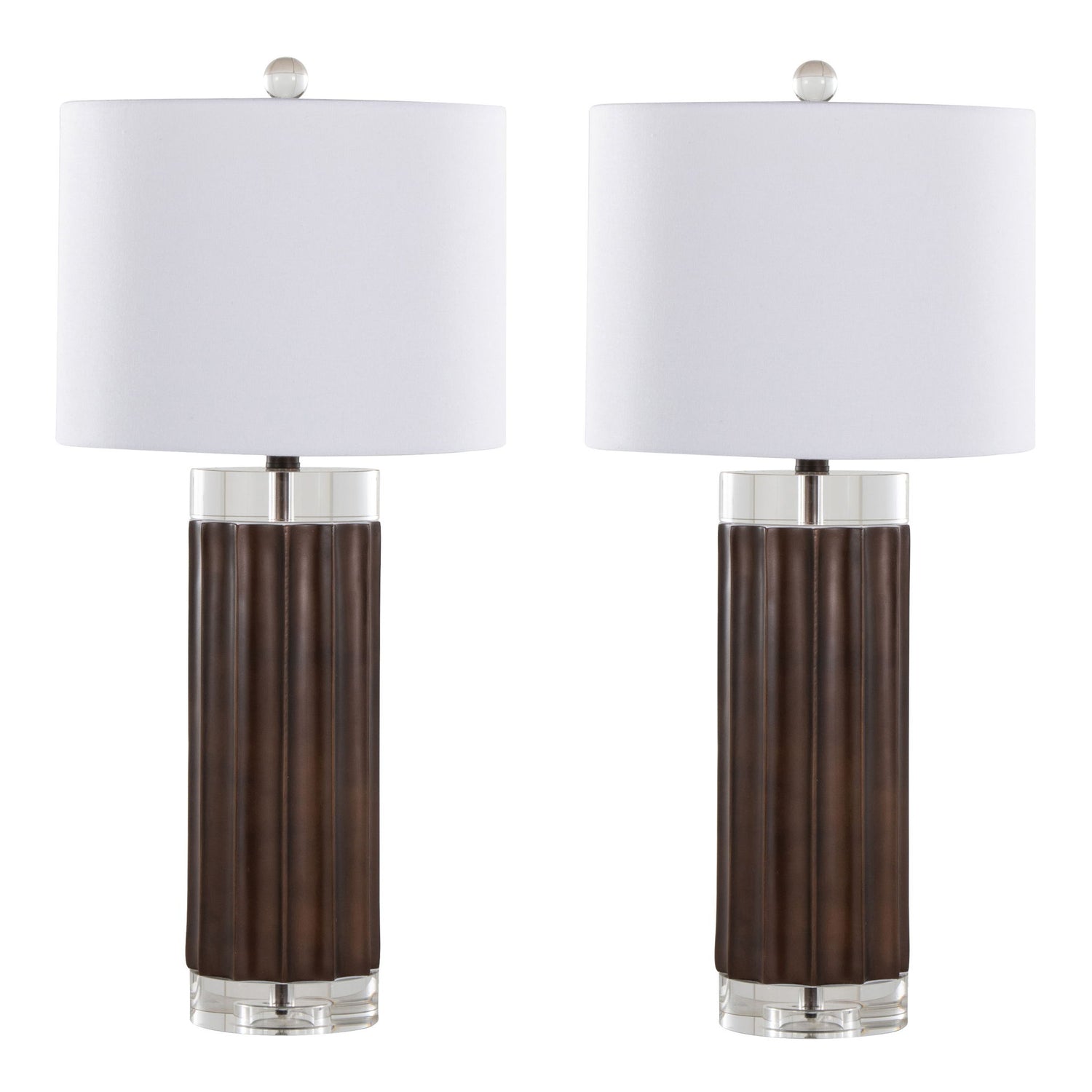 Cylinder - Fluted Contemporary Table Lamp (Set of 2) - Brown / Clear / White