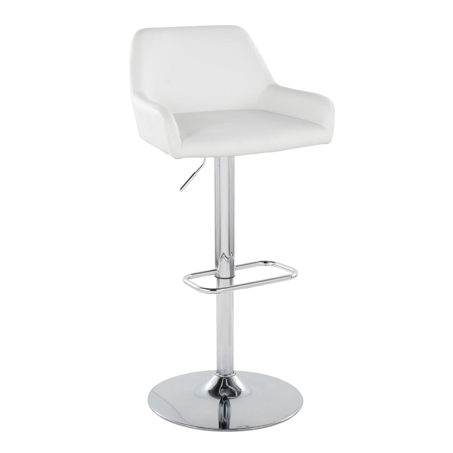 Daniella - Contemporary Adjustable Barstool With Swivel With Rounded Rectangle Footrest (Set of 2) - Chrome / White