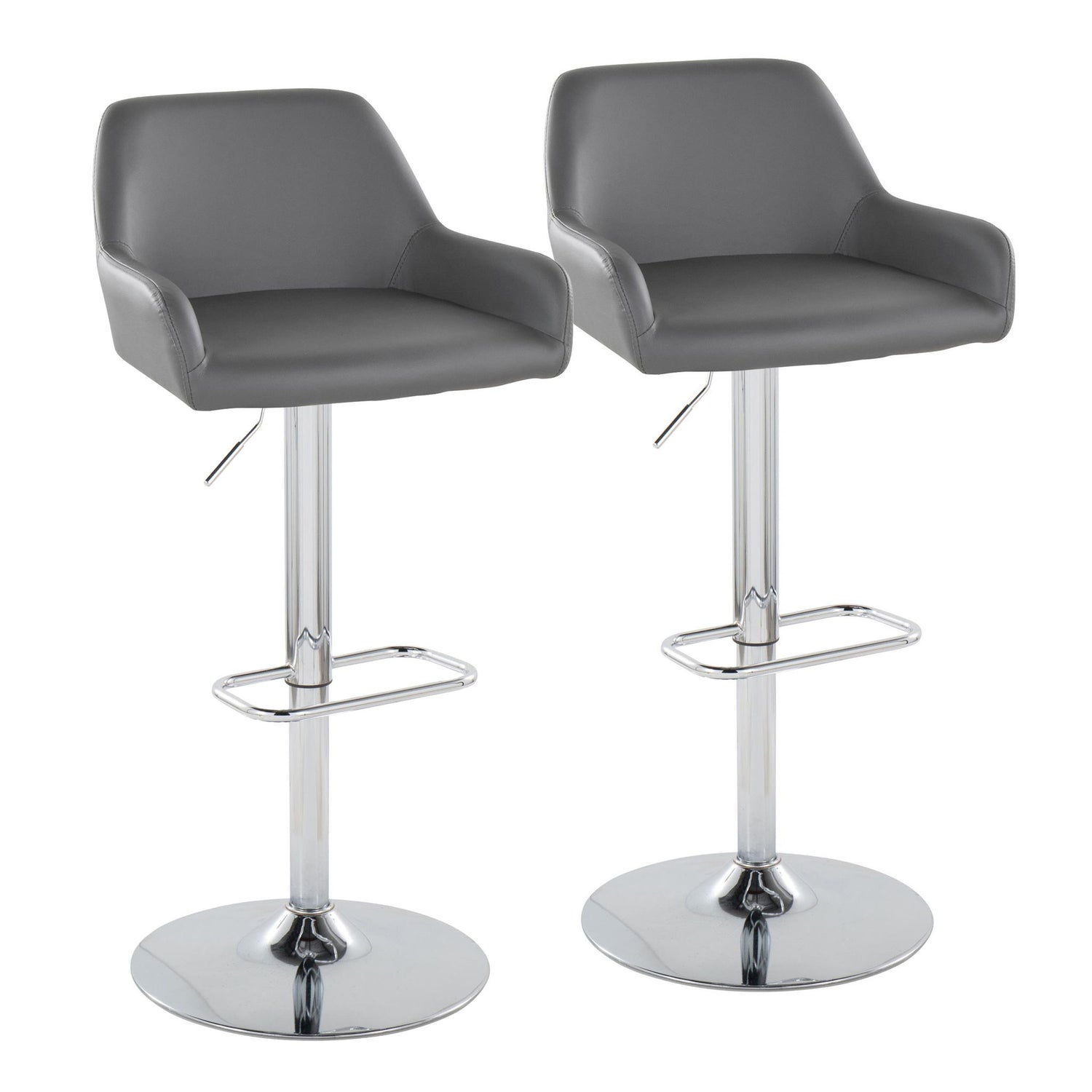 Daniella - Contemporary Adjustable Barstool With Swivel With Rounded Rectangle Footrest (Set of 2) - Chrome / Gray