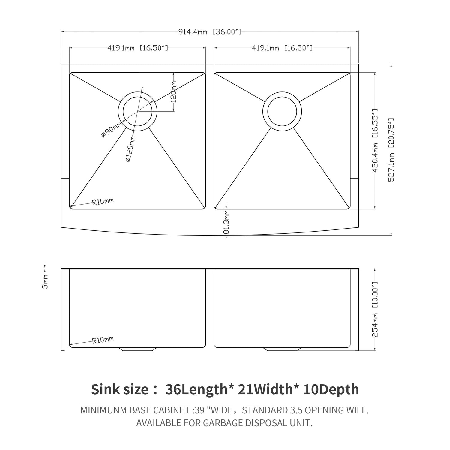 Double Bowl Farmhouse Sink / Stainless Steel Apron Front - Black / 36"W x 21"D x 10"H is backordered and will ship as soon as it is back in stock.