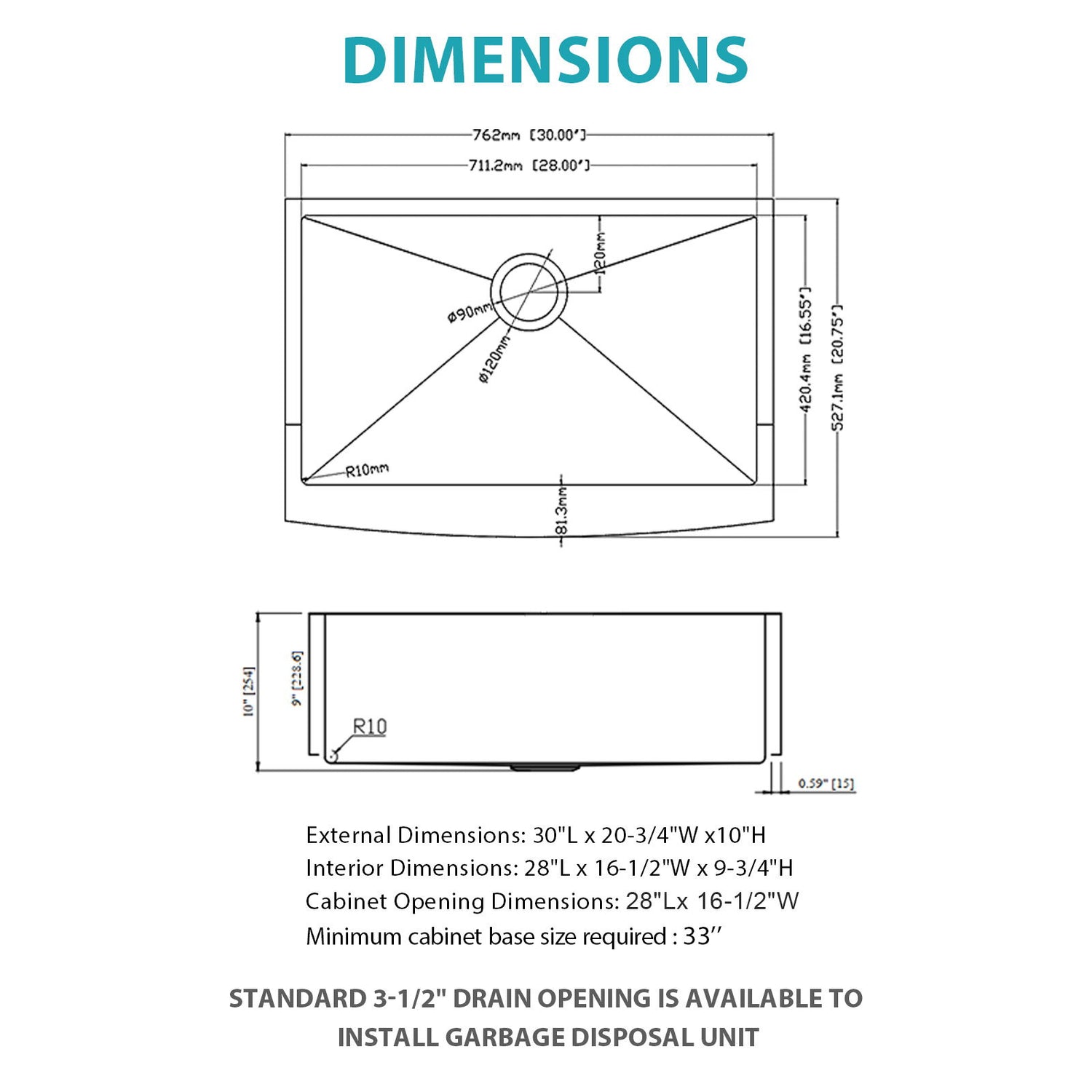 - Versatile Fit: External dimensions of, fitting minimum cabinet size of 36 inches.