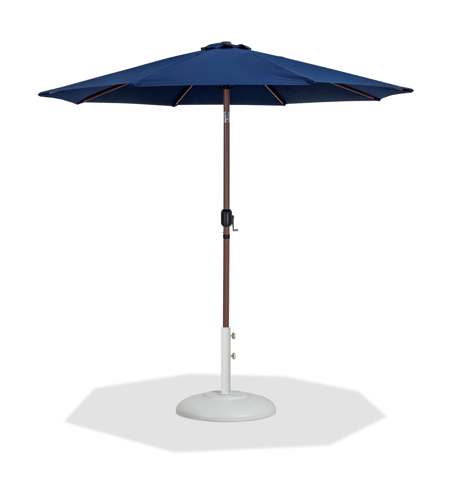 Fiji - Aluminum Patio Umbrella With Round White And Teak Base - Navy