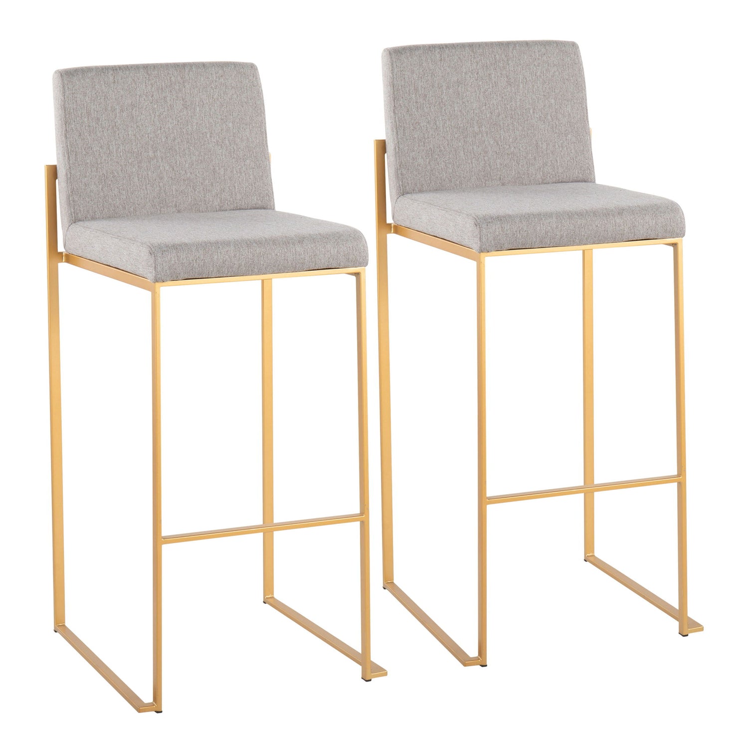 Fuji - Contemporary High Back Barstool (Set of 2) - Gold / Gray