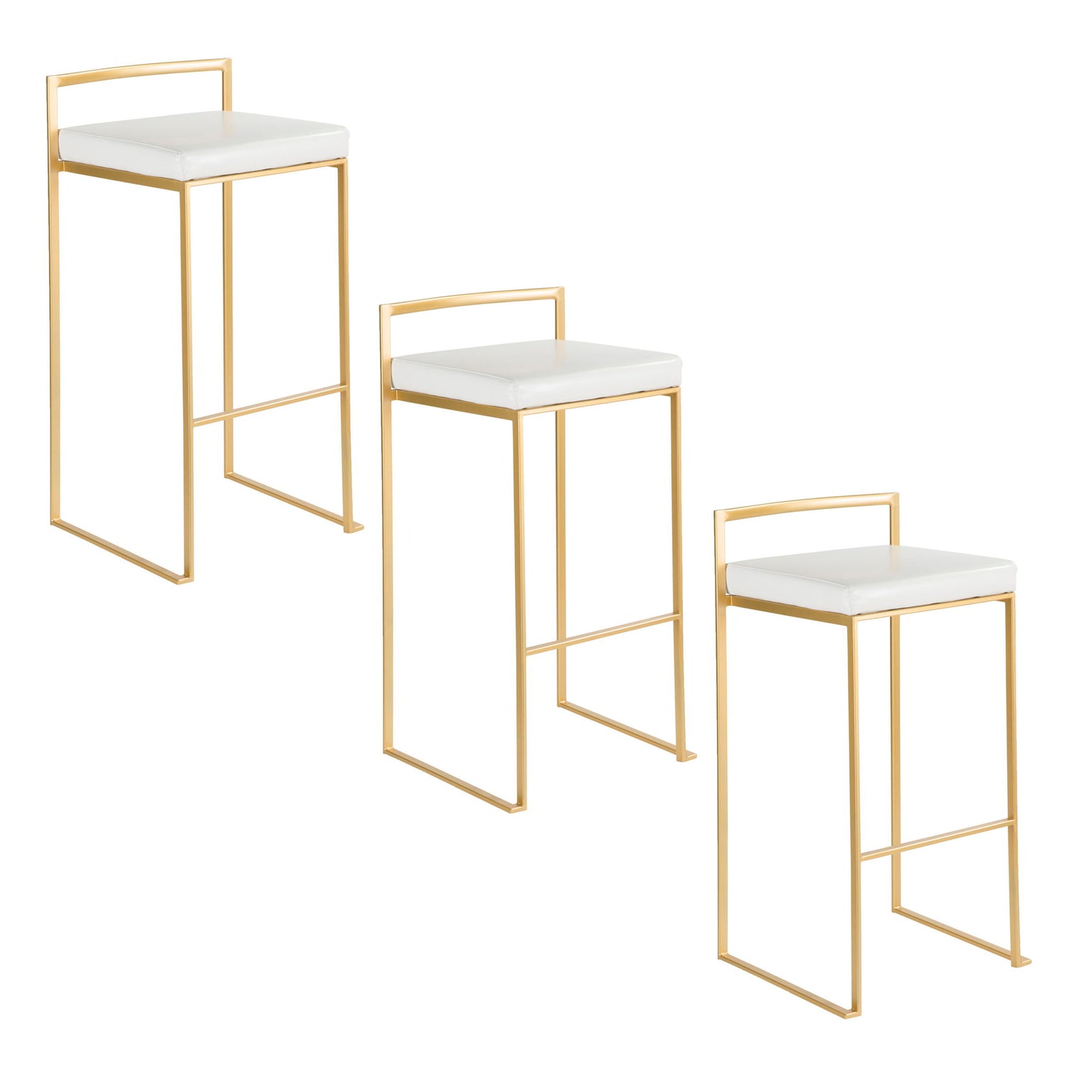Fuji - Contemporary Stackable Barstool (Set of 3) - Gold / White