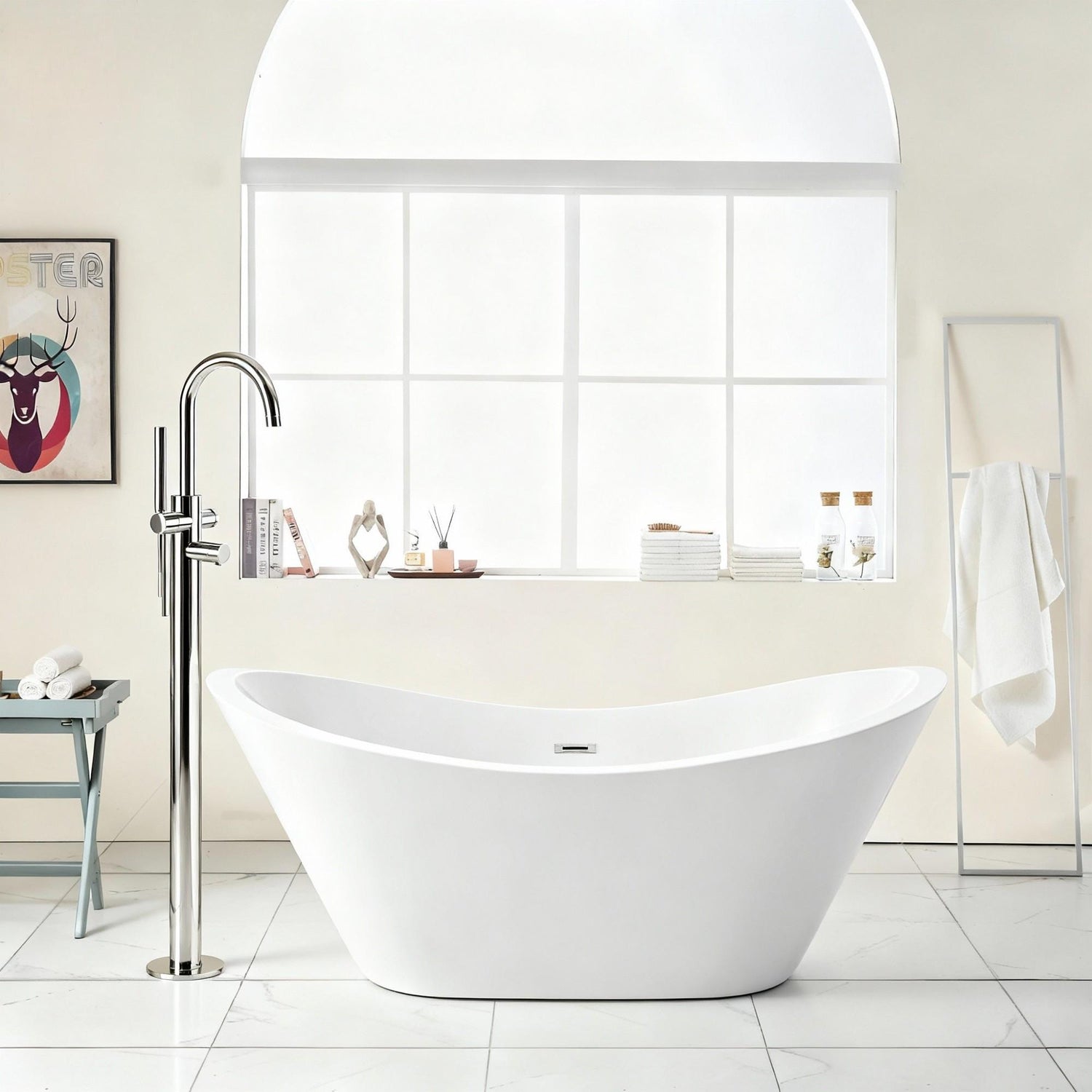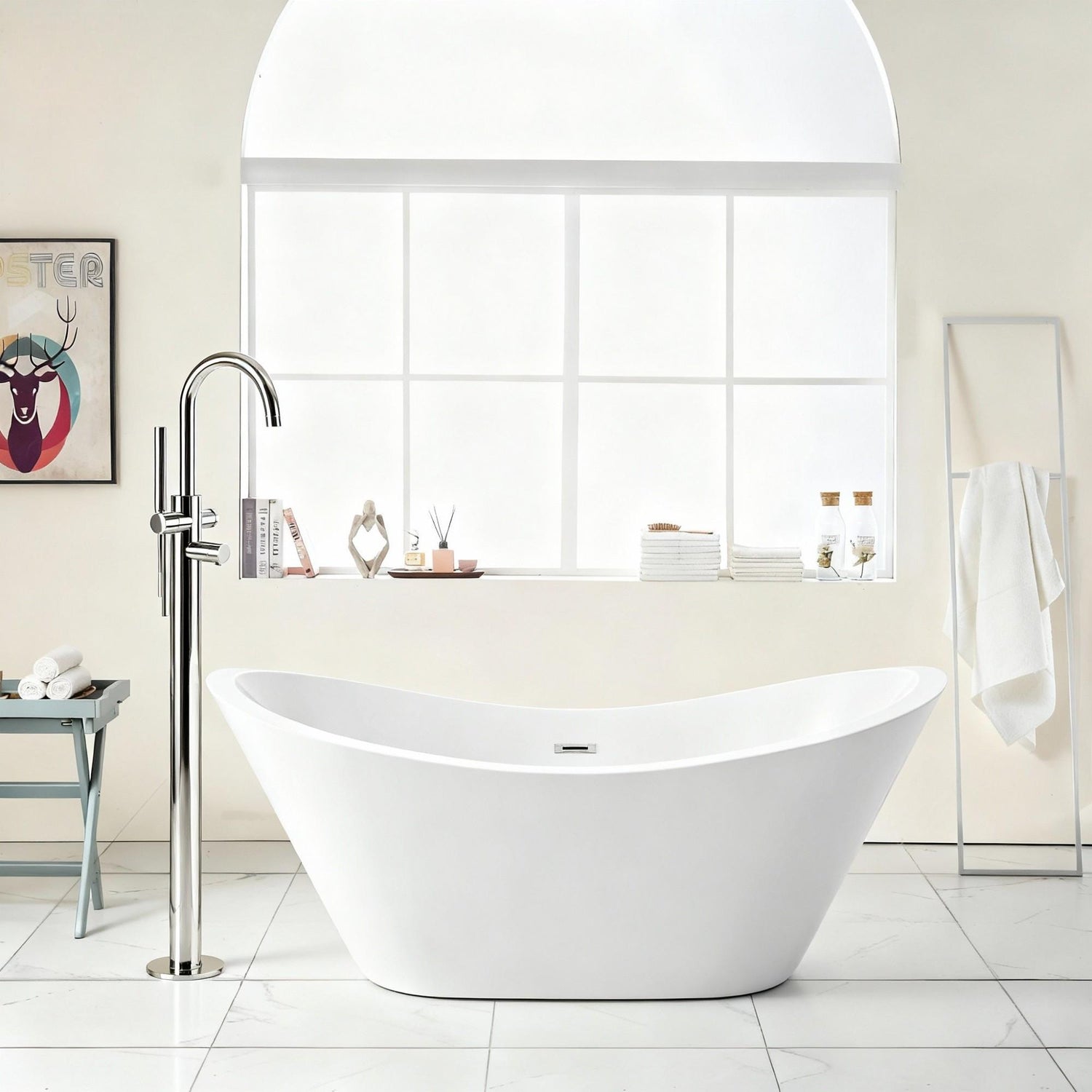 Glossy Freestanding Bathtub, Double Slipper Design, Deep Soaking Comfort
