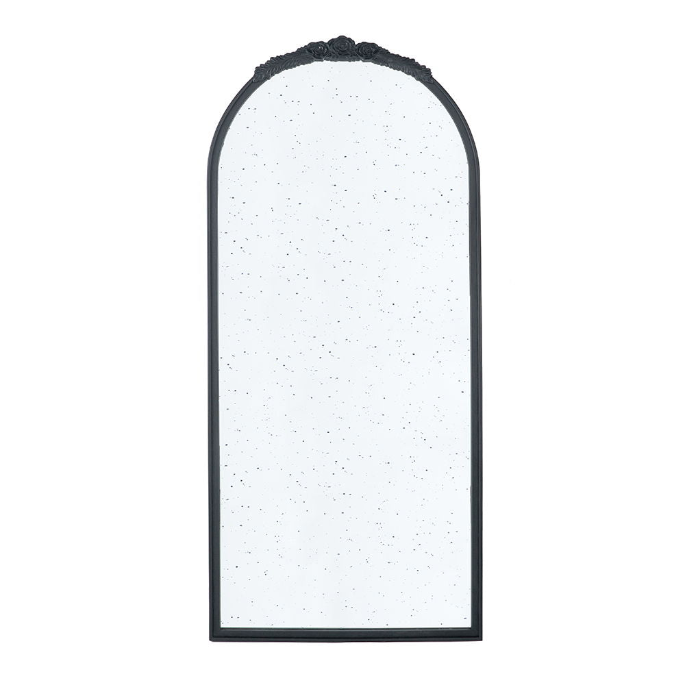 Hand Carved Rose Antique Mirror Frame, Large Arch Mirror Wall Decor For Living Room, Bathroom, Entryway - Black