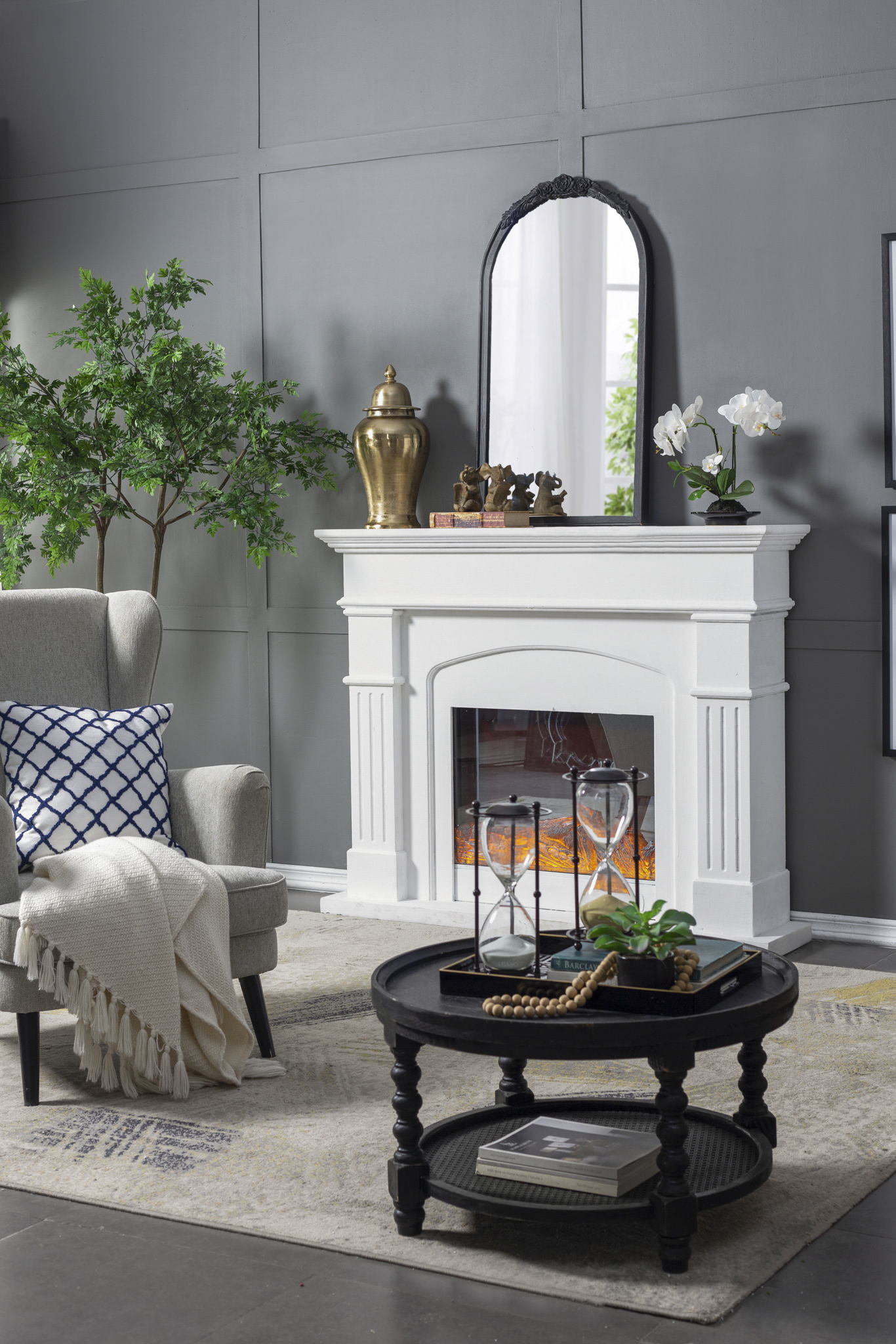 Hand Carved Rose Antique Mirror Frame, Wood Arch Mirror Wall Decor For Living Room - Black / 22.8"W x 2"D x 41.9"H is backordered and will ship as soon as it is back in stock.