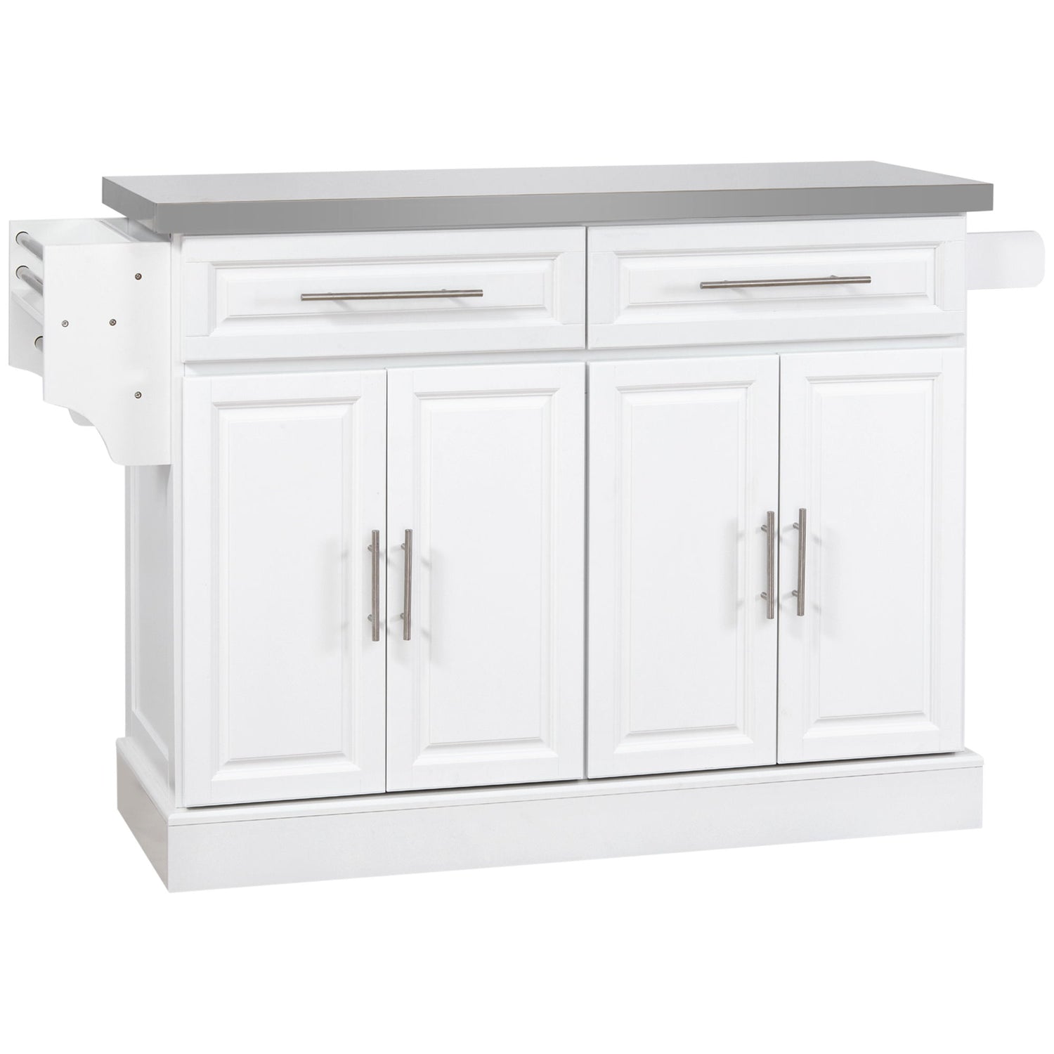 Homcom - Rolling Kitchen Island With Storage, Portable Kitchen Cart With Stainless Steel Top, 2 Drawers, Spice, Knife And Towel Rack And Cabinets - White