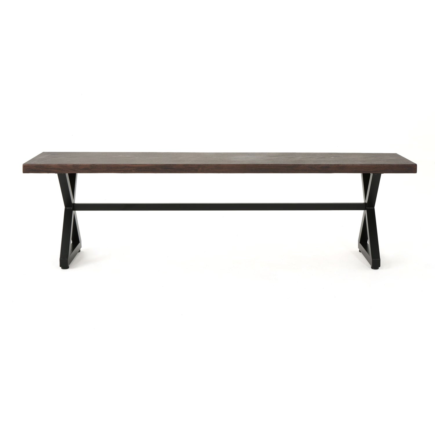 Modern Industrial Outdoor Aluminum Dining Bench With Steel Frame - Brown / Black