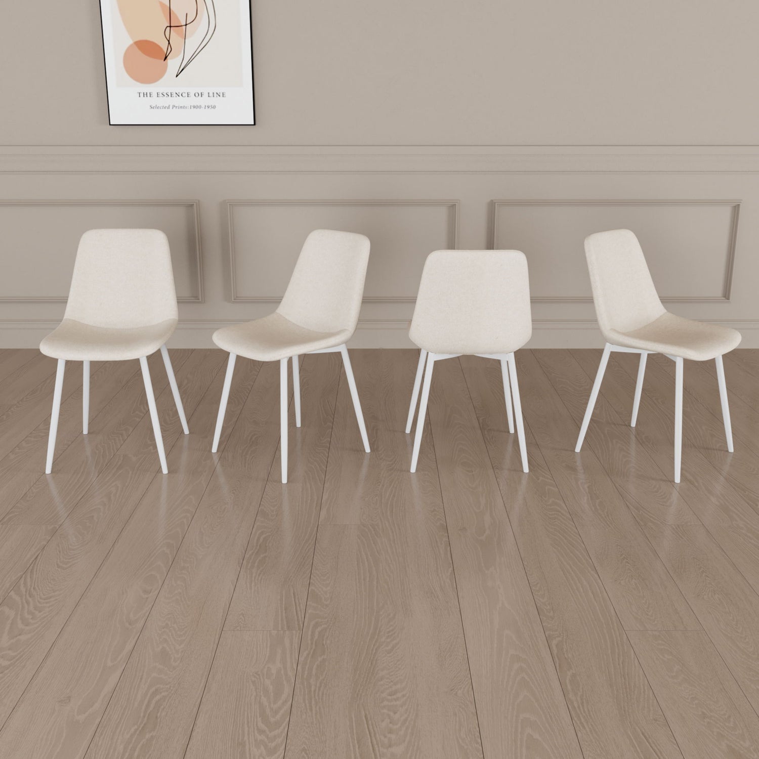 Modern Kitchen Dining Chairs (Set of 4) With Linen Padding And Sturdy Metal Legs - Beige