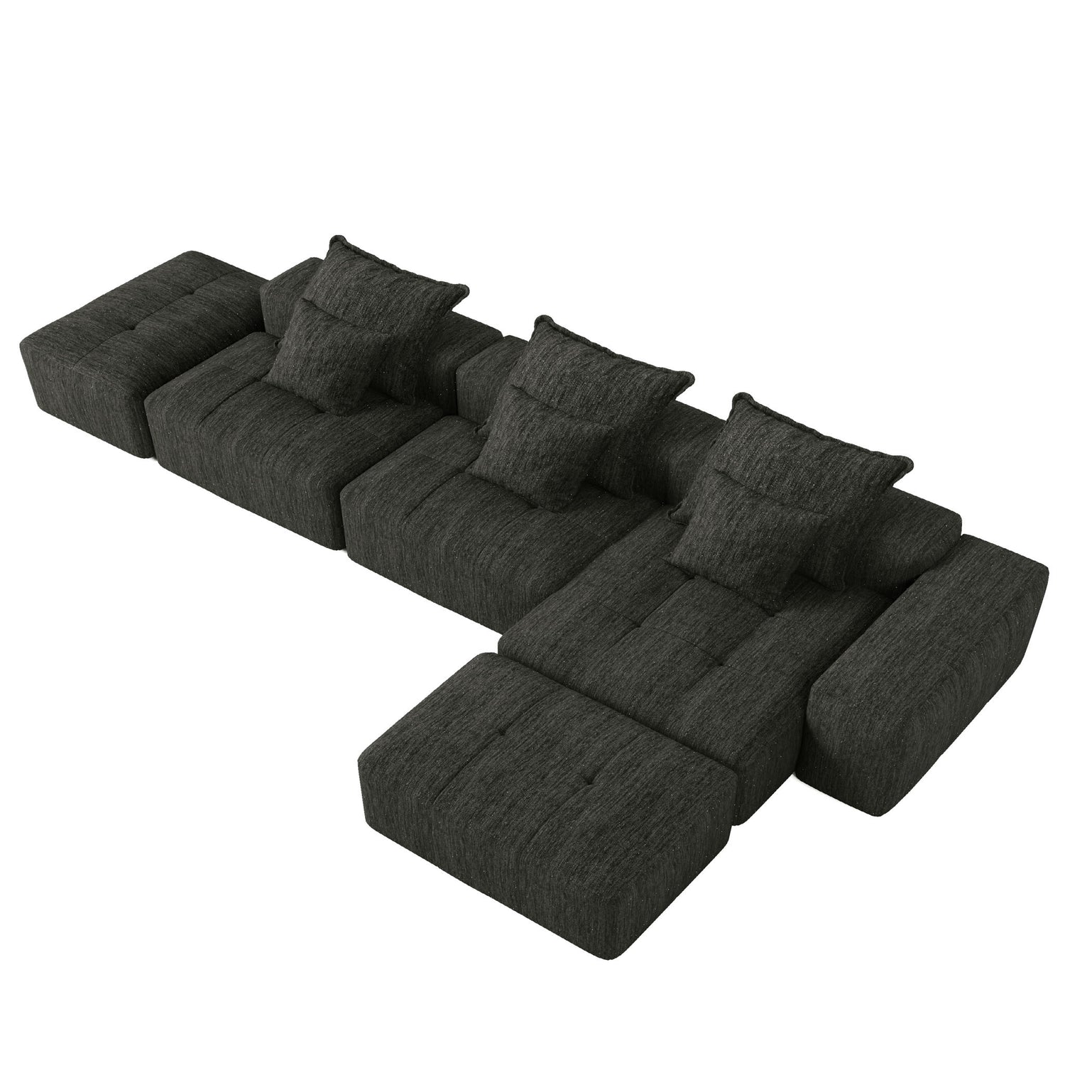 Modern Oversized Modular Sectional Sofa, Sparkling Chenille Fabric Soft Cushion Sofa With 6 Pillows, 6 Pieces Diy Combination Tufted Sofa, No Assembly Required - Black