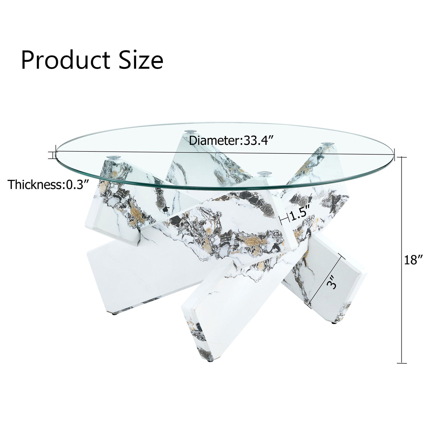 Modern Round Glass Coffee Table With Tempered Glass Countertop - White