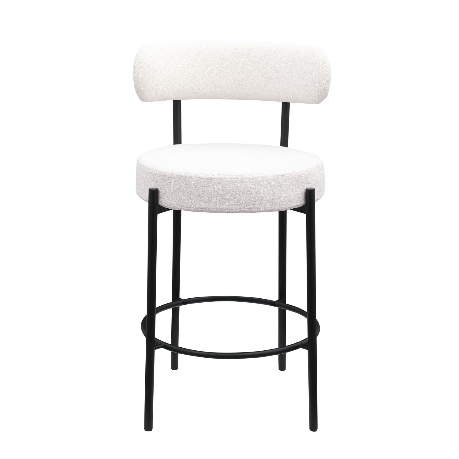 Modern Counter Height Stools, Uphsoltered Seat Barstools With Round Low Back Kitchen Stools With Footrest For Dining Room (Set of 2) - White