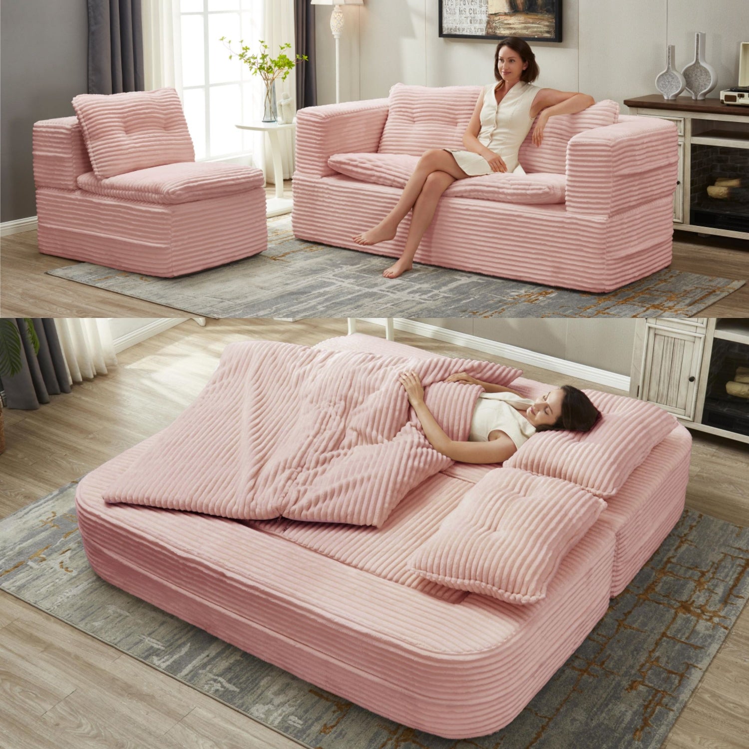 - Multi Functional Sectional Sofa Bed: Integrates a sofa and a floor sofa bed, and can be freely switched for use.