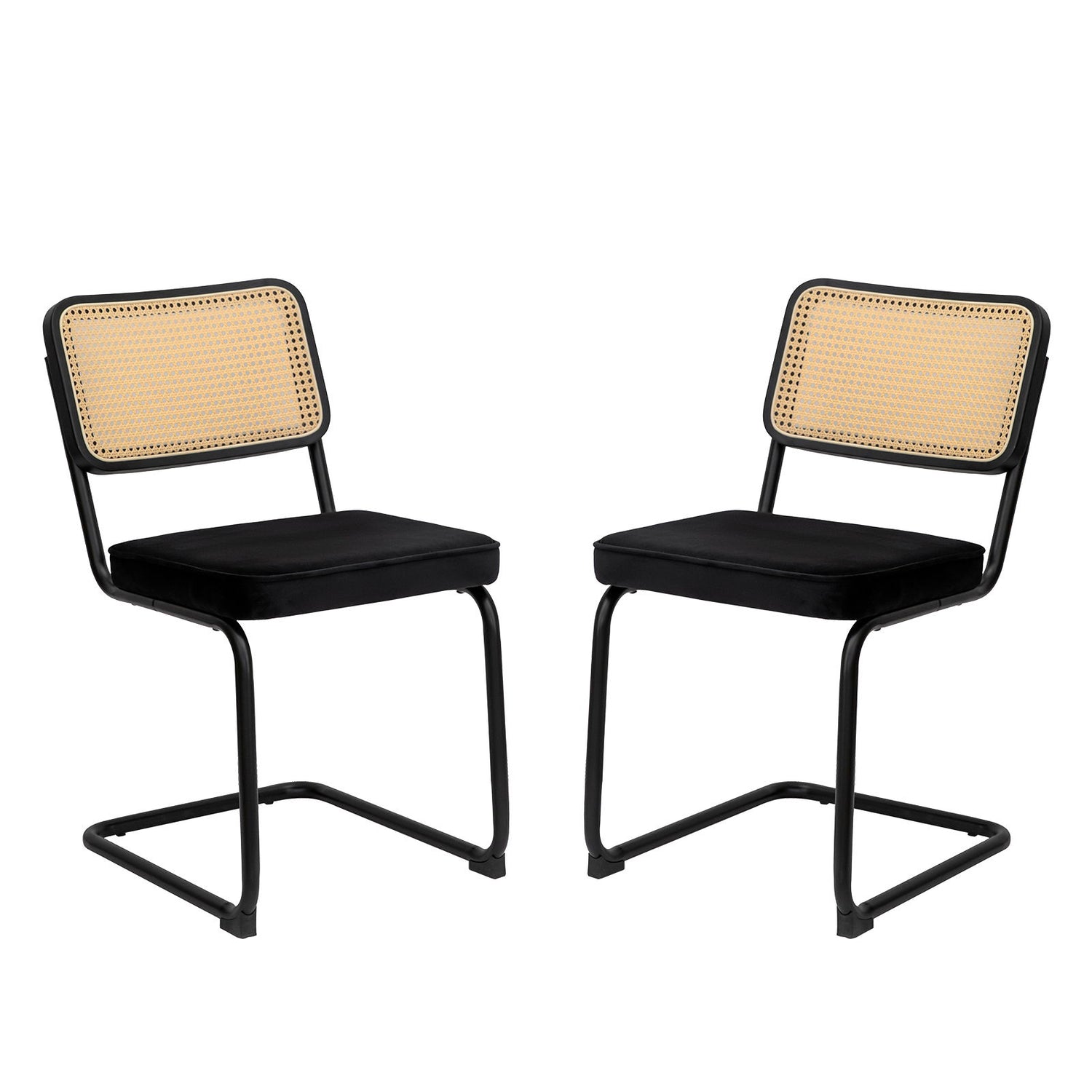 Dining Chairs, Velvet Rattan Side Accent Chairs With Painted Legs, Modern Mid - Century Breuer Designed Chairs, Upholstered Dining Living Room Kitchen Chairs (Set of 2) - Black