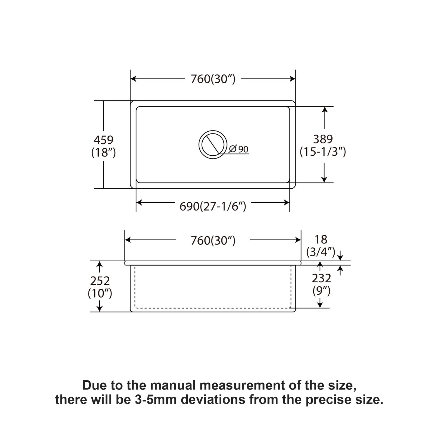 - Stylish Deep White Kitchen Sink Size: 30" x 18" x 10" provides ample space for pots, pans, and grills with minimal splash.