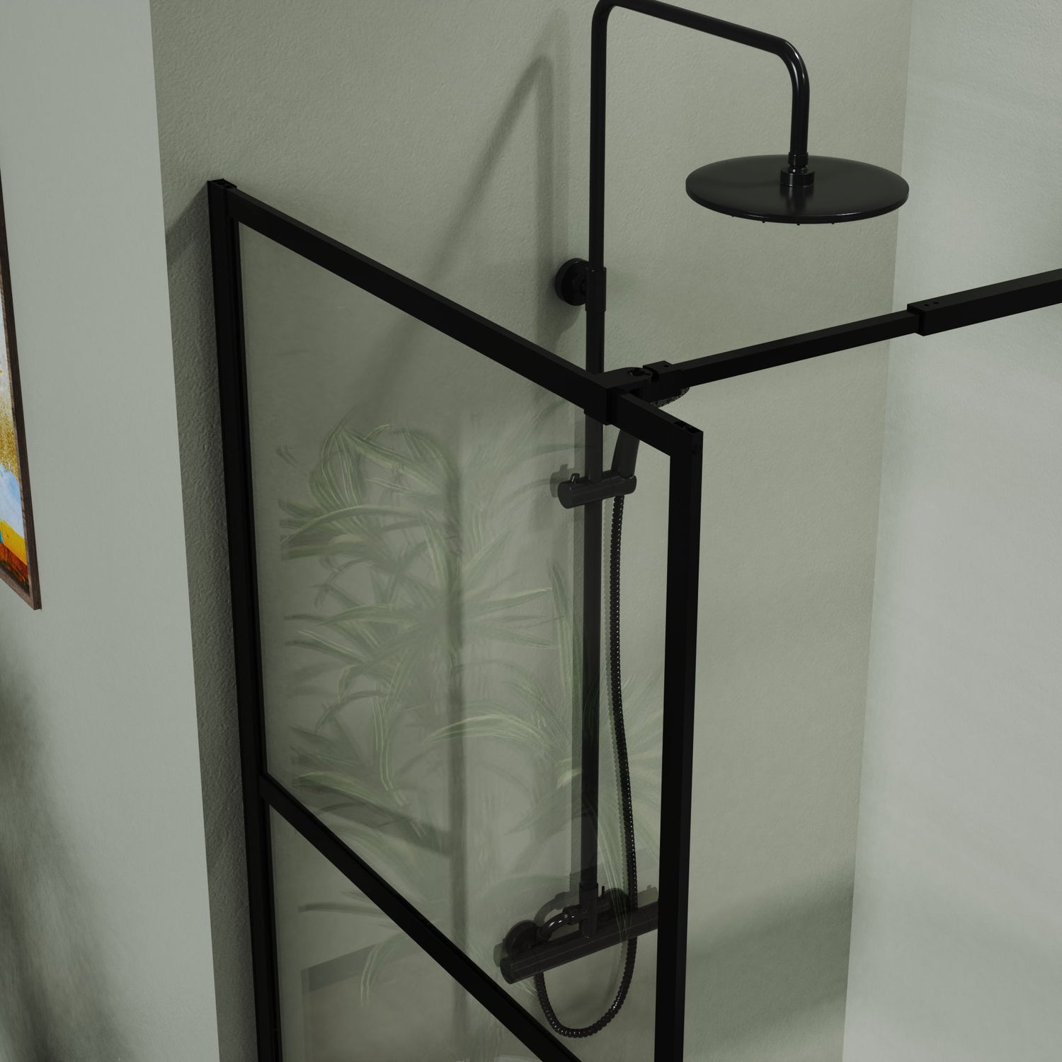Shower Screen Door Walk In Wet Room, 3 Panel Style - Black