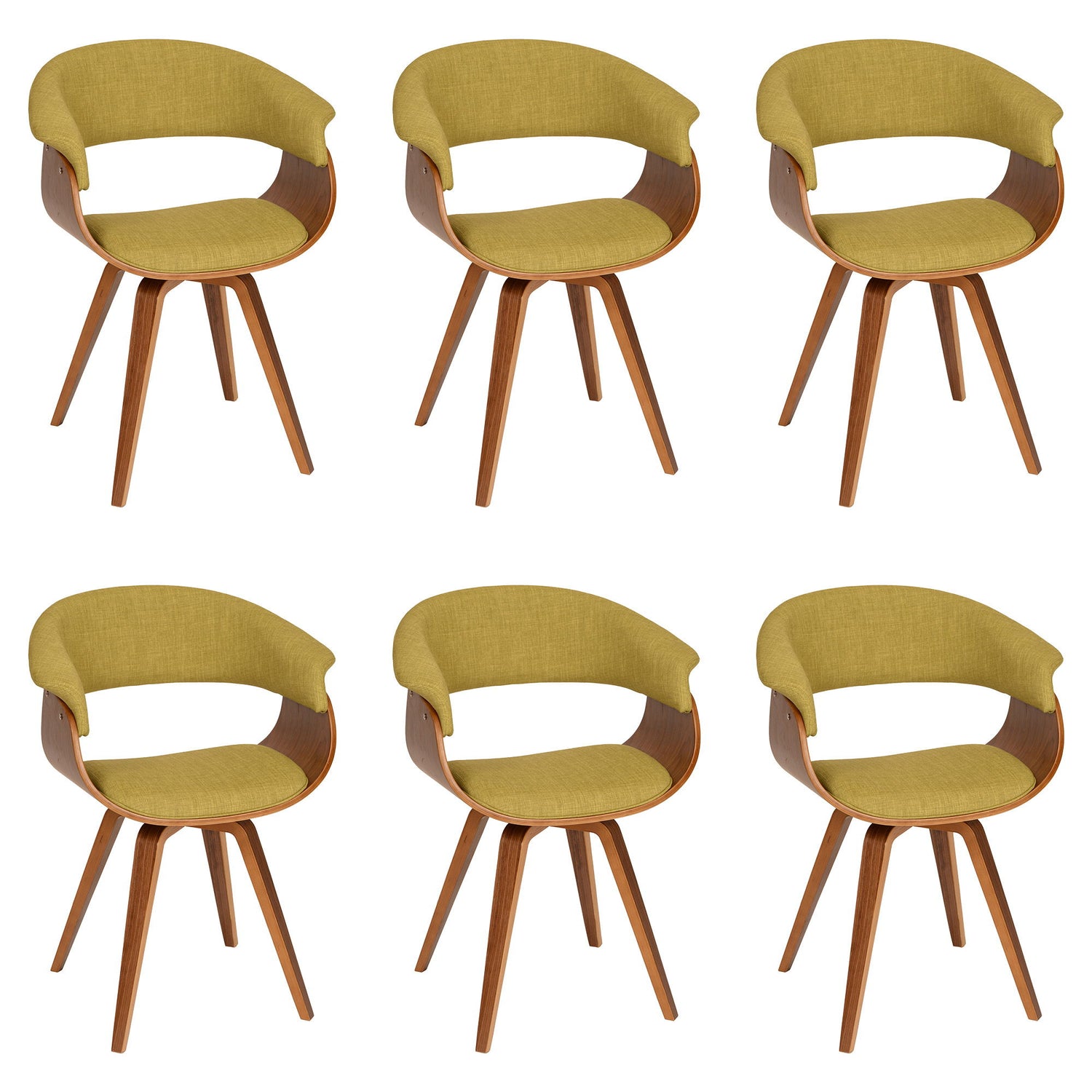 Summer - Modern Chair (Set of 6) - Green Fabric And Walnut Wood