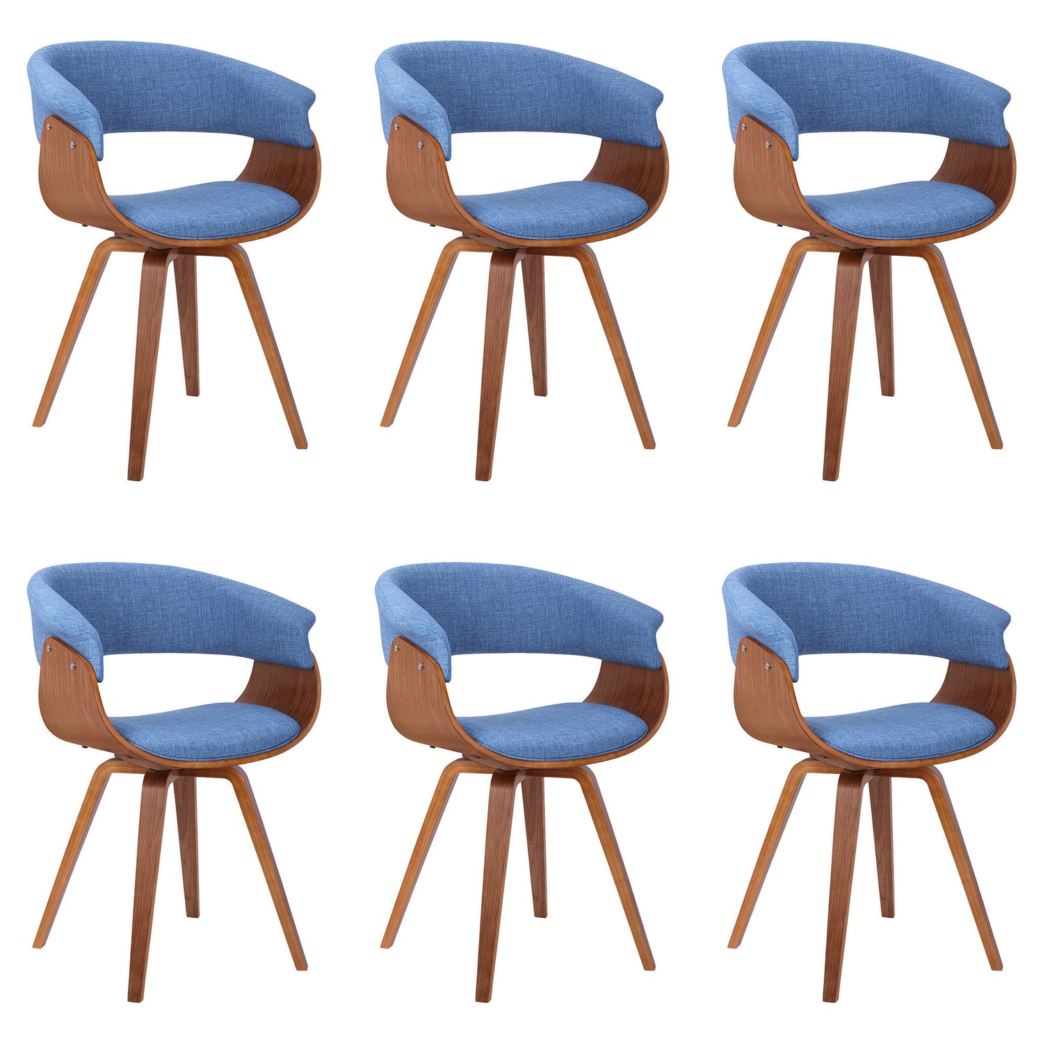 Summer - Mid-Century Chair (Set of 6) - Blue Fabric With Walnut Wood Finish