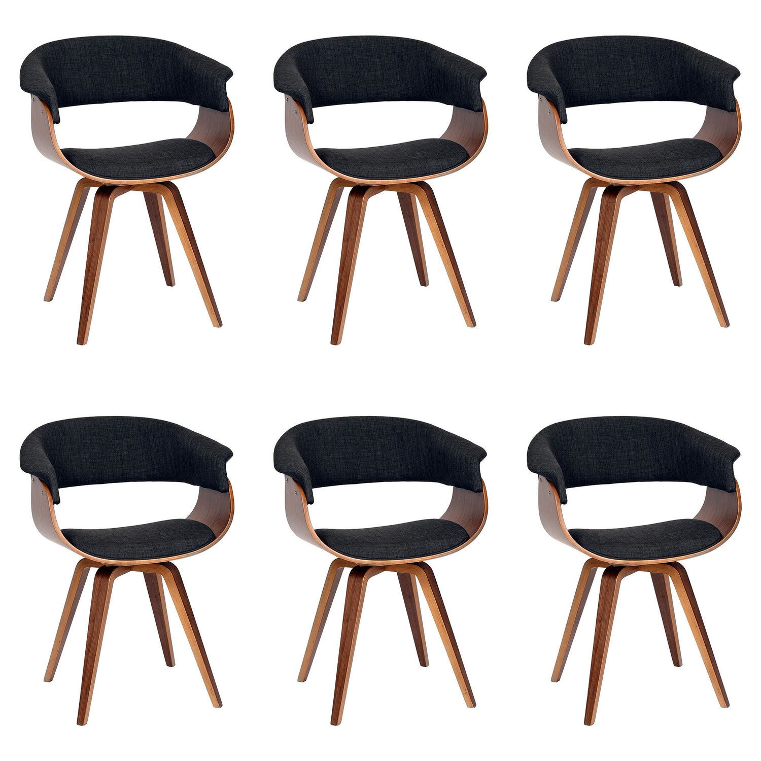 Summer - Modern Chair (Set of 6) - Charcoal Fabric And Walnut Wood